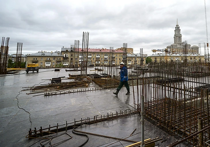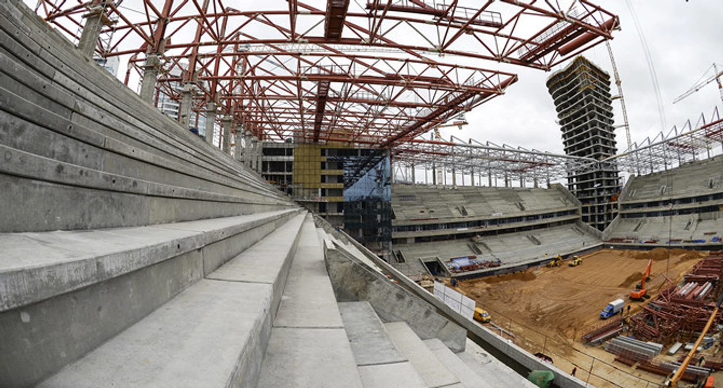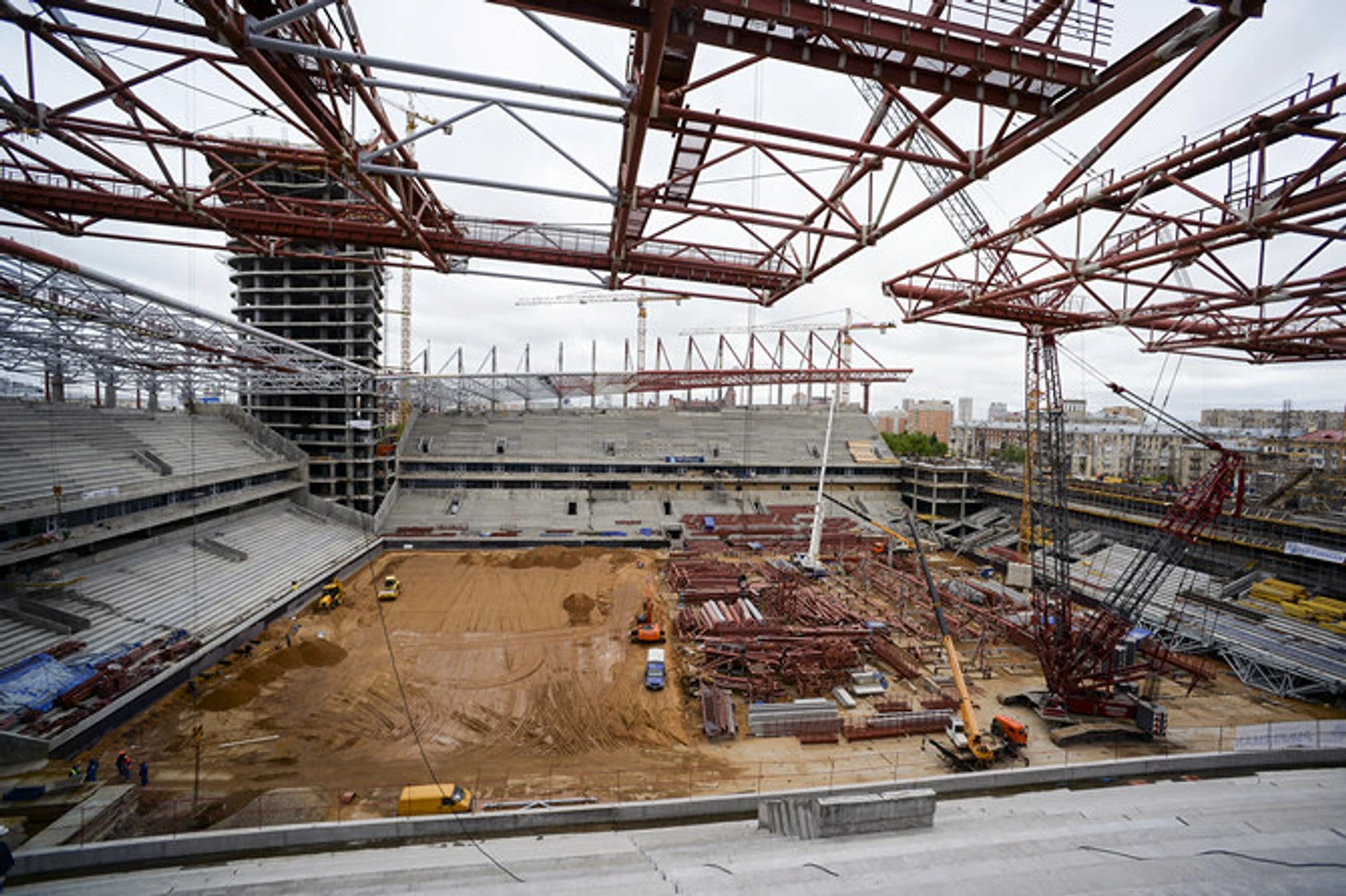 Вид на «Москва-Сити» с крыши строящегося стадиона: