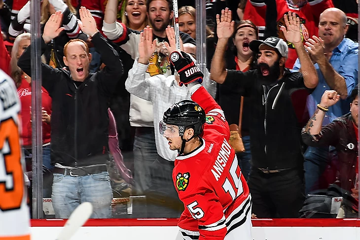 В хоккее принято обозначать звено по центрфорварду – говорят про тройку Дацюка, Кросби или Макдэвида. Тем забавнее, что второе звено «Чикаго» звеном Анисимова почти не называли – тройка Кэйна или Панарина-Кэйна, в крайнем случае. Двое крайних форвардов наслаждались светом прожекторов, Анисимов – где-то ближе к занавесу, в тени.