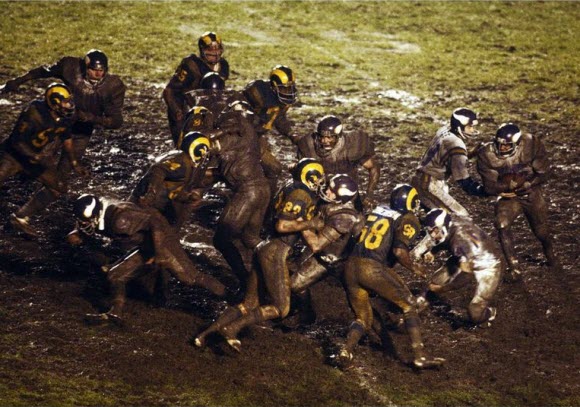 Спустя 11 лет после этих малярных экспериментов белые футбольные мячи стали выпускаться промышленным способом, на некоторые из них наносили полоски черного цвета. Вечерние игры проводились все чаще, белый мяч широко использовался вплоть до 1956-го года. Командам, чьи шлемы были белого или серебристого цвета, приходилось перекрашивать их для вечерних игр – судьи опасались, что игроки соперника могут перепутать белый мяч и такого же цвета шлем. Можно себе представить судьбу несчастного, чью голову приняли бы за упавший мяч.