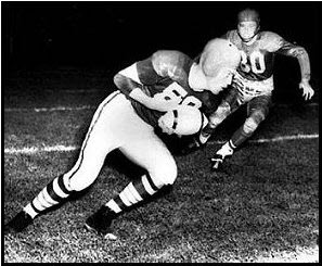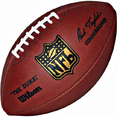 В 1956-м уже мяч пострадал от изменений в форме. Для того, чтобы сделать черно-белую телевизионную картинку более различимой, все гостевые команды обязали выходить на поле в белой форме. Белый мяч в таких условиях давал огромное преимущество - нападающим проще прятать мяч от защитников (или делать вид, что у них есть мяч). «Альбиноса» изгнали с поля, «вечерним вариантом» стал обычный, коричневый мяч с белыми полосками у узких концов. Из-за телевидения, кстати говоря, в 1965-м году NFL изменила и цвет флагов, которые судьи бросают на поле при нарушении правил. Белые флажки инода невозможно было различить из-за снега, поэтому их сделали ярко-золотыми, как сейчас.