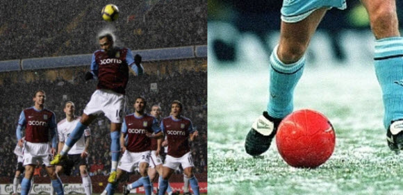 В европейском футболе в зимнюю погоду используют красный или желтый мячи, для лучшей видимости.