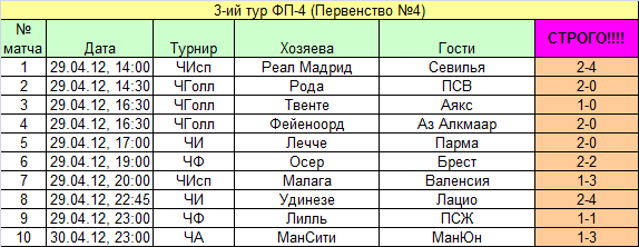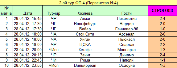 Турнир Футбольные прогнозы) Сезон 4) Скоращение ФП4)