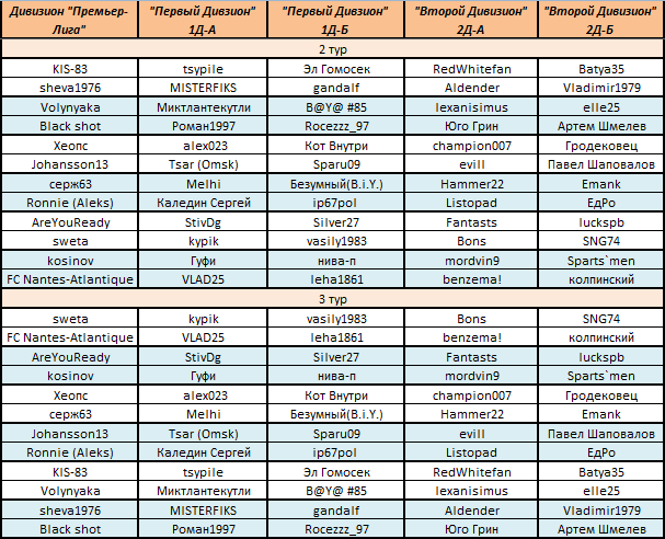 Расписание 2-го и 3-го туров: