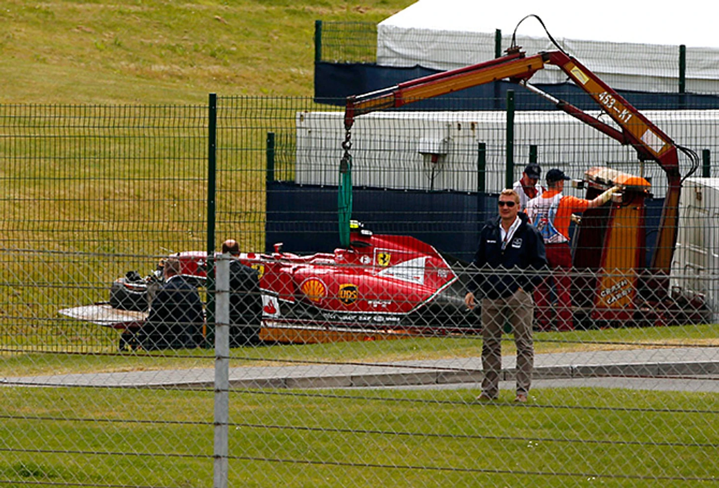 Сначала нам показалось, что контакт болида Райкконена с расщелиной был настолько быстр и силен, что он сломал заднюю подвеску, вызывая резкий выброс вправо и вводя машину в удар о металлический барьер силой 47g. Однако в официальном пресс-релизе «Феррари» нет и намека на подобные повреждения, вместо этого всего-навсего написано, что «кочка между травой и асфальтом развернула его F14 T».