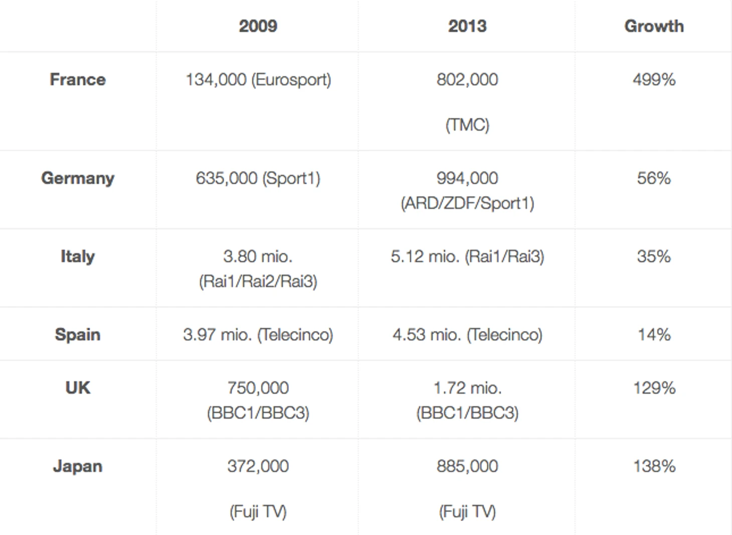 Да, как и все крупные летние турниры. В 2013-м на всех ключевых футбольных телевизионных рынках отмечался заметный рост популярности.