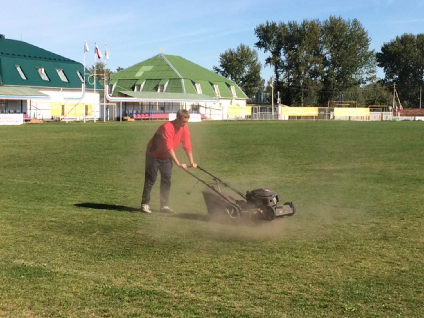– Стрижка так всегда и занимает пять часов, еще покраска, нанесение линий – столько же, – объясняет Шкилев. – Здесь есть заводской агроном, в принципе, на нем все озеленение, но нашим полем он не занимается. Он посмотрел как-то на него, глаза закрыл и ушел. Помощи как таковой никакой. Он сказал, что нужно поливать, и все.
