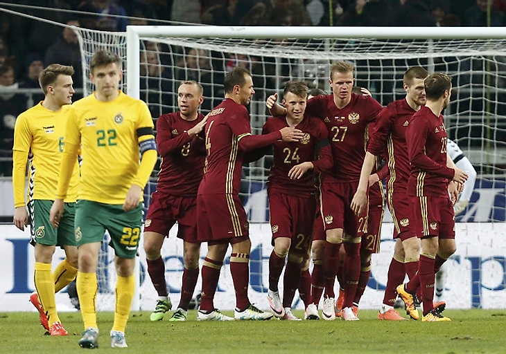 «Две игры за сборную – два мяча. Это сумасшедшая статистика – можно заканчивать в сборной», – пошутил после товарищеского матча с Литвой (3:0) Леонид Слуцкий. Речь шла о 19-летнем полузащитнике ЦСКА Александре Головине, который действительно удивляет: два раза выходил в сборной на замену (с Беларусью в июне 2015-го и сейчас), оба раза забивал.