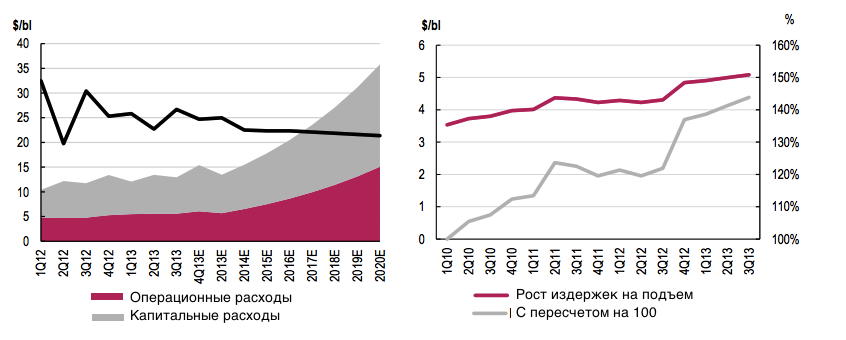 - Операционные и капитальные затраты на старых месторождениях в первые три квартала этого года составили $13 за барр.
