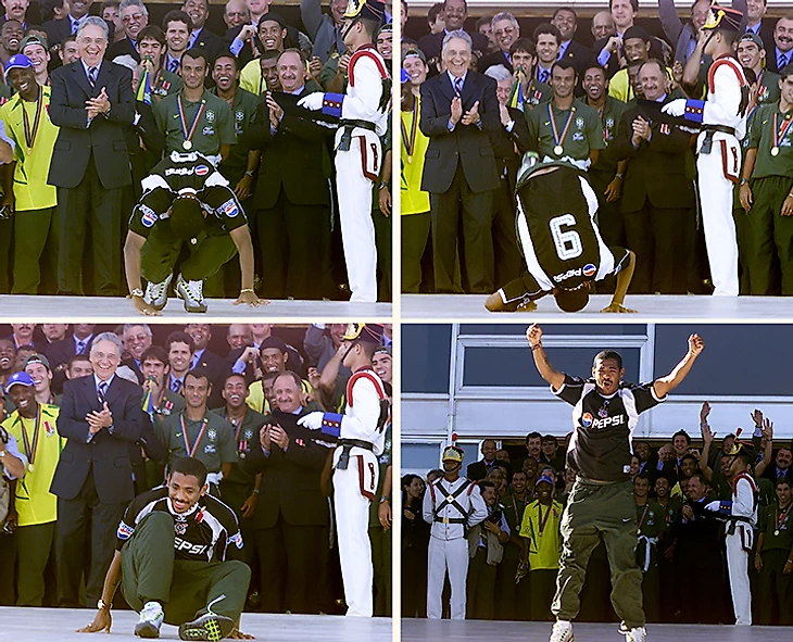 «Скажите, зачем вы тогда это сделали?» – спрашивают его теперь игроки, которые в 2002 году еще не родились или только учились ходить. Эх, если бы он помнил. Возможно, он вдохновился трюком своего друга Эдисона – тот пообещал, что начнет жонглировать мячом в центре поля, когда «Кориантианс» обеспечит победу над «Палмейрасом», сдержал обещание и спровоцировал дикую драку стенка на стенку. Вампета тоже любил бросать себе вызовы. Он решил: когда президент Бразилии подойдет к нему и поздравит с победой на чемпионате мира, он кувыркнется, как болельщик Нилсон Локателли, что тем летом каждый день приветствовал так сборную перед тренировками. А зачем? Да просто весело. Вернувшись к игрокам, Вампета услышит от вратаря Маркоса: «Я думал, ты клоун, а ты акробат».