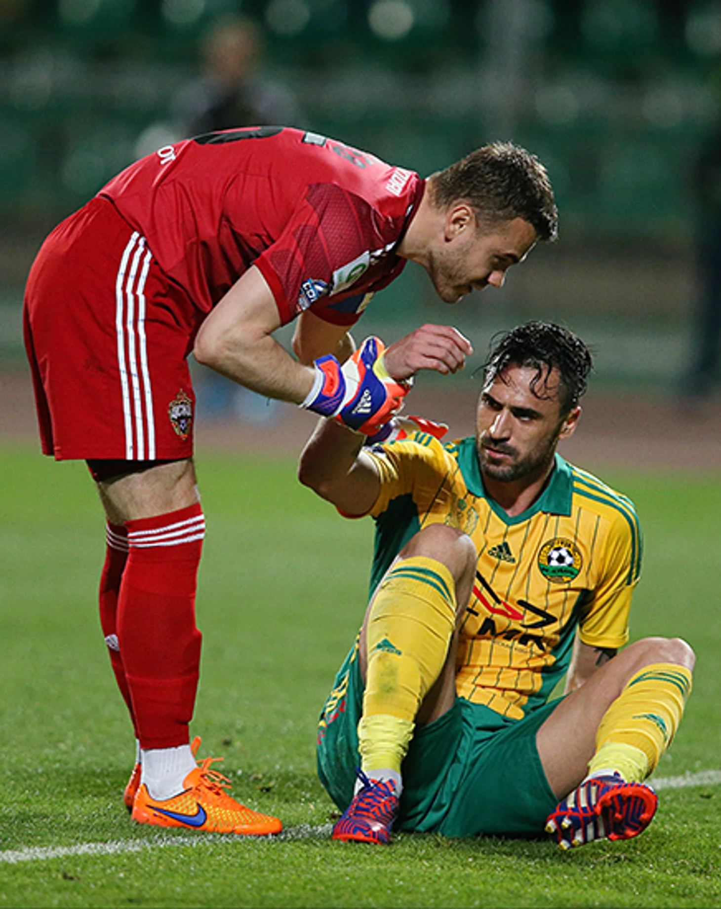Слуцкий и Натхо продолжали кричать на судей и только, когда Акинфеев обнял их и подтолкнул, повернулись и пошли с поля. Акинфеев после этого преодолел еще пятьдесят метров, похлопал фанатам ЦСКА и бросил им свои перчатки. А больше к болельщикам ЦСКА никто и не подходил.