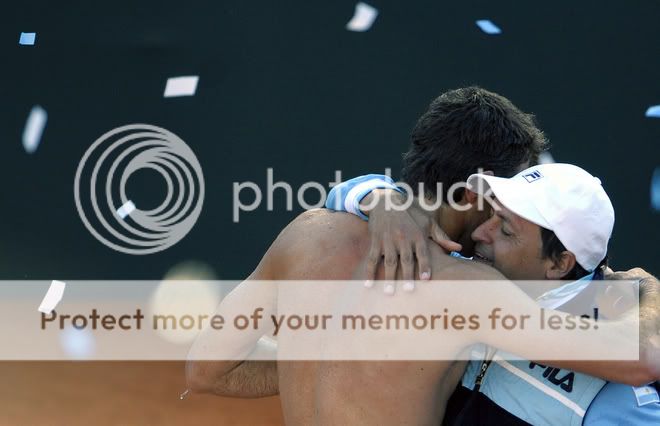 Хуан Мартин единственный теннисист, завоевавший свои первые четыре титула на четырёх турнирах подряд. Но (законы антилогики в действии) я начну не с них. На разогреве у ATP выступит Кубок Дэвиса 2008. Нет, его команда не выиграла трофей, но то, что творилось в стане финалистов после победы над россиянами, в аргентинской прессе именовалось не иначе как "безумие") Глядя на фото, тяжело не согласиться...
