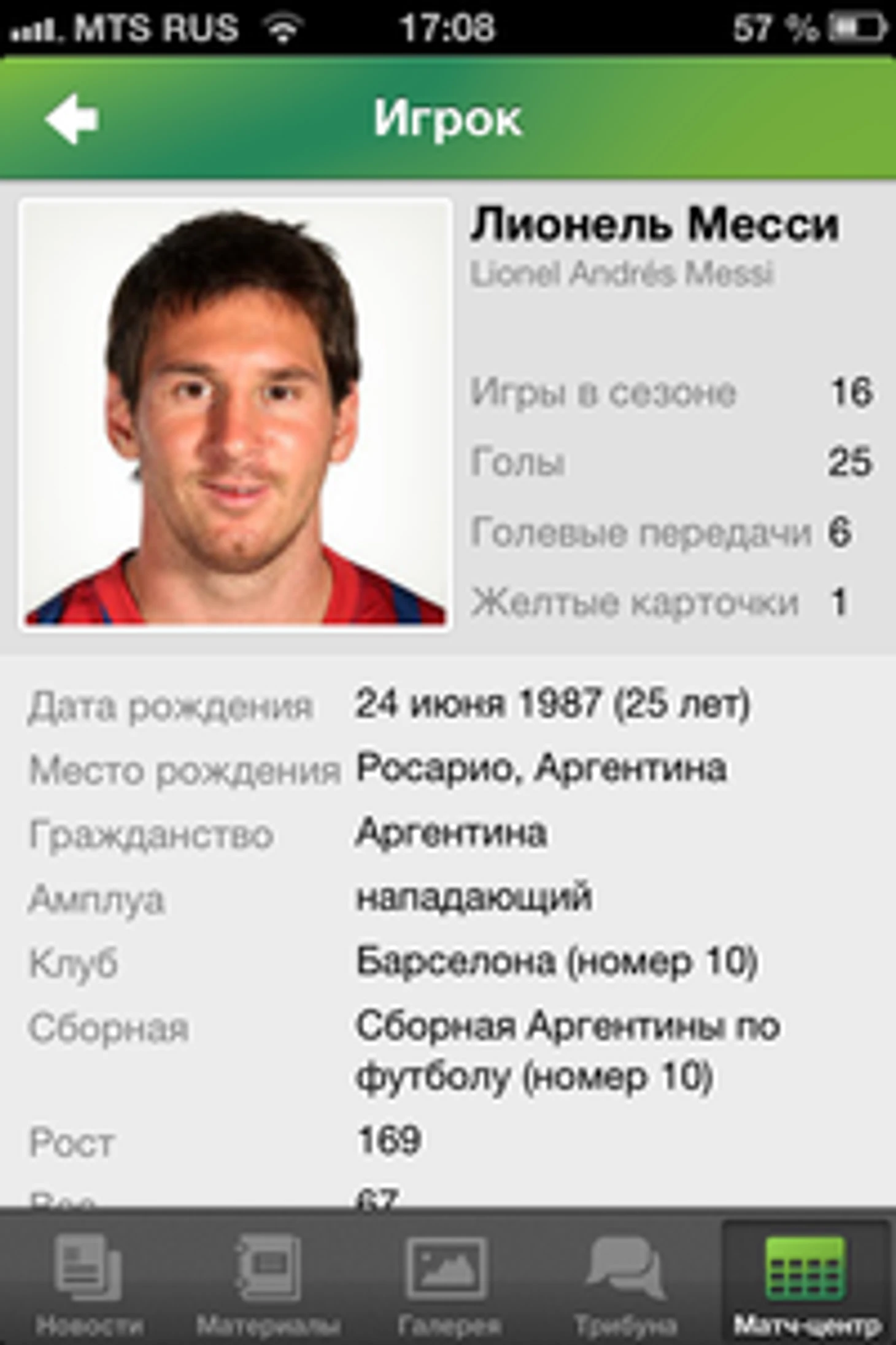 В обновленных приложениях появились и страницы профилей футболистов, на которой собрана вся самая главная информация об игроке. Попасть на страницу футболиста можно со страницы статистики матча или из вкладки «состав» страницы профиля команды.