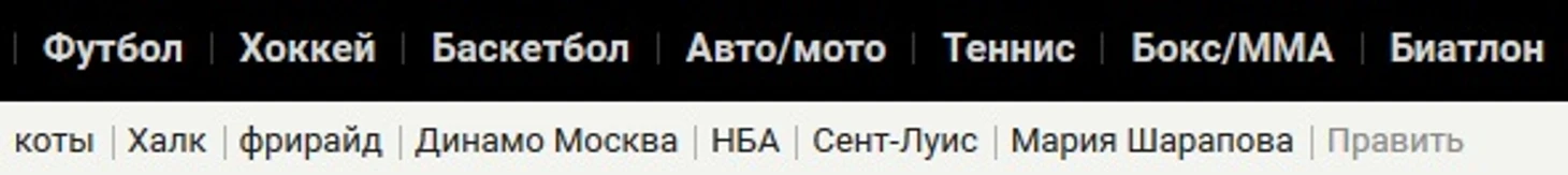Вы можете добавить не только команду, но и турнир, человека или какую-то отдельную тему из нашей базы тегов. Нажимайте на «Править», чтобы быстро удалить ненужное или изменить порядок тегов, перетаскивая их названия. В итоге ваше меню может выглядеть, например, вот так: