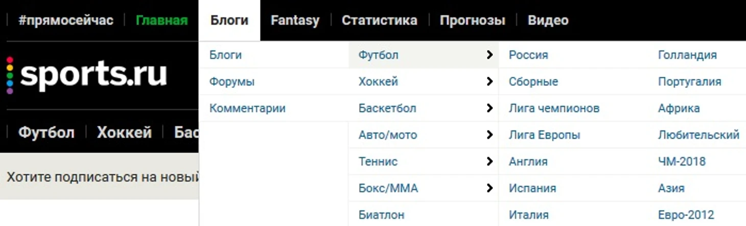 Одна из самых важных функций сайта. На Sports.ru очень много разных блогов: популярных и начинающих, личных и тематических, официальных и юмористических. Вы обязательно пропустите что-то интересное, если не подпишетесь на понравившиеся блоги.