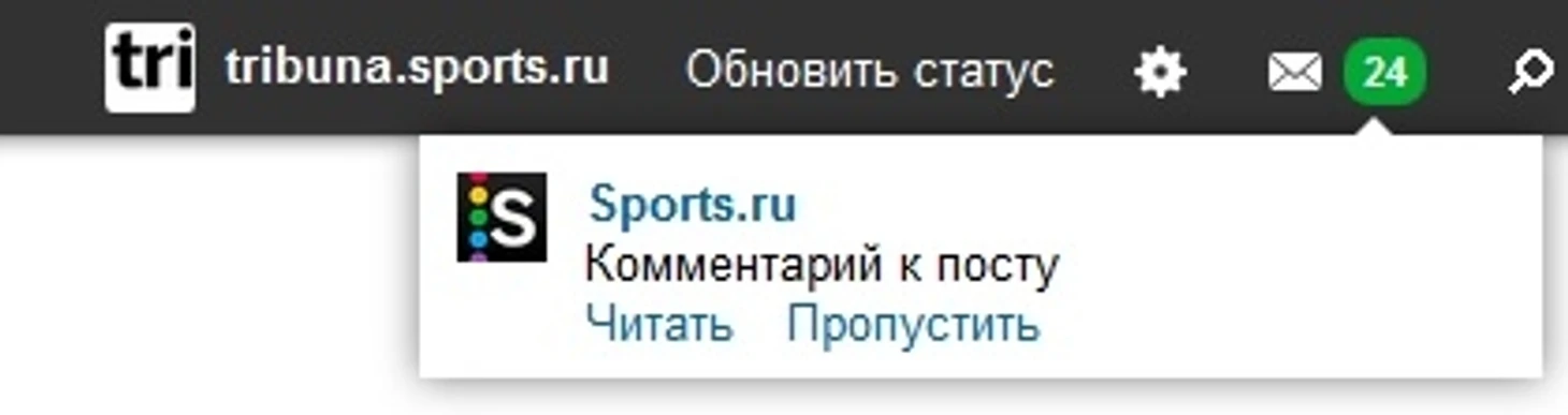 Как только появляется свежая новость на одну из тем, возле ссылки “Новости” в вашем персональном меню загорается зеленый счетчик.