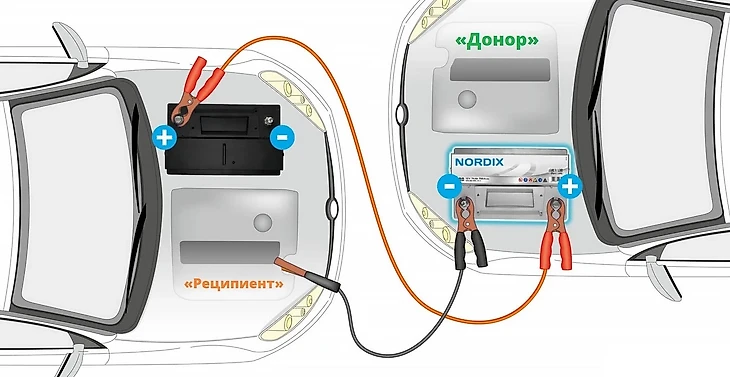 Источник питания у донора должен быть полностью заряжен и иметь удовлетворительное состояние.
