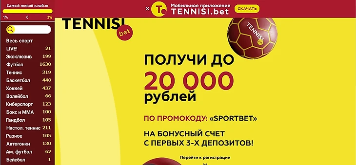 Пройти регистрацию в «Тенниси» с промокодом SPORTBET – призовую комбинацию нужно указывать без кавычек.