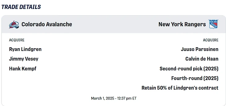 Я оцениваю этот обмен, как взаимовыгодный, но с большим риском для Колорадо. И это явно не сделка-блокбастер.