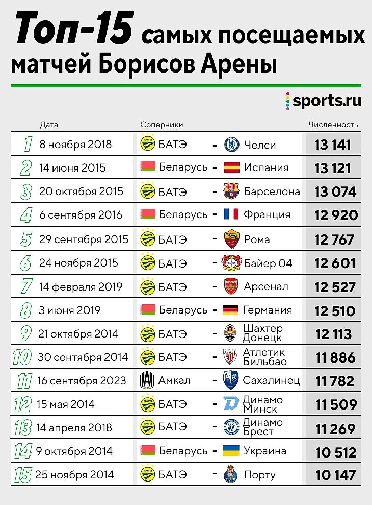 2. Едва не прицепился, что в топе нет матча БАТЭ и минского «Динамо» из 2014-го. А он есть, хоть и не очень заметный, поскольку «бело-синим» поставили логотип хоккейного клуба.