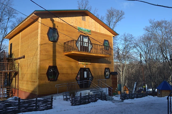 В туристическом комплексе «Солнечная поляна» есть еще несколько интересных музеев. Один из них Дом пчелы. Всем известно, что домом пчел называется улей. Вот и в нашем случае это своеобразный улей, только сильно увеличенный. Внешне это деревянное двухэтажное строение с окнами-сотами, а вот внутри мы, действительно, погружаемся в мир пчел. Многие ли из нас знают как живут пчелы, в какой экосистеме, как они общаются, как несут пыльцу и улетая за много километров находят свой дом?