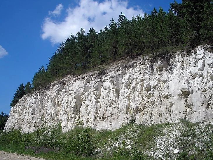 Центр меловых скал — урочище горы Беленькая. Причем интересна цветовая гамма. Если смотреть на скалы на большом расстоянии, то белый цвет переходит в зеленый, потому что ни покрыты лесами. Одни из самых знаменитых меловых скал получили свое определенное название. Среди них гряда «Три шишки», хребет «Таши», гора «Каланча». Высота некоторых достигает 370 метров. Не обошлось тут и без человека, которому обязательно нужно было воспользоваться возможностью заняться разработкой мелового карьера.