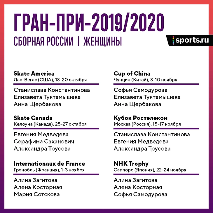 Но самое интересное прямо сейчас – распределение фигуристов по этапам Гран-при. Особенно – российских.