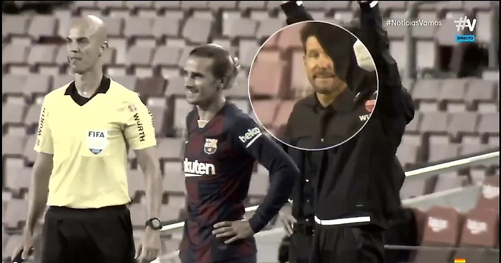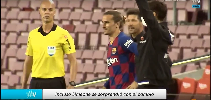 Что касается экс-тренера Гризманна Диего Симеоне, то его реакцию на эту замену засняли камеры.