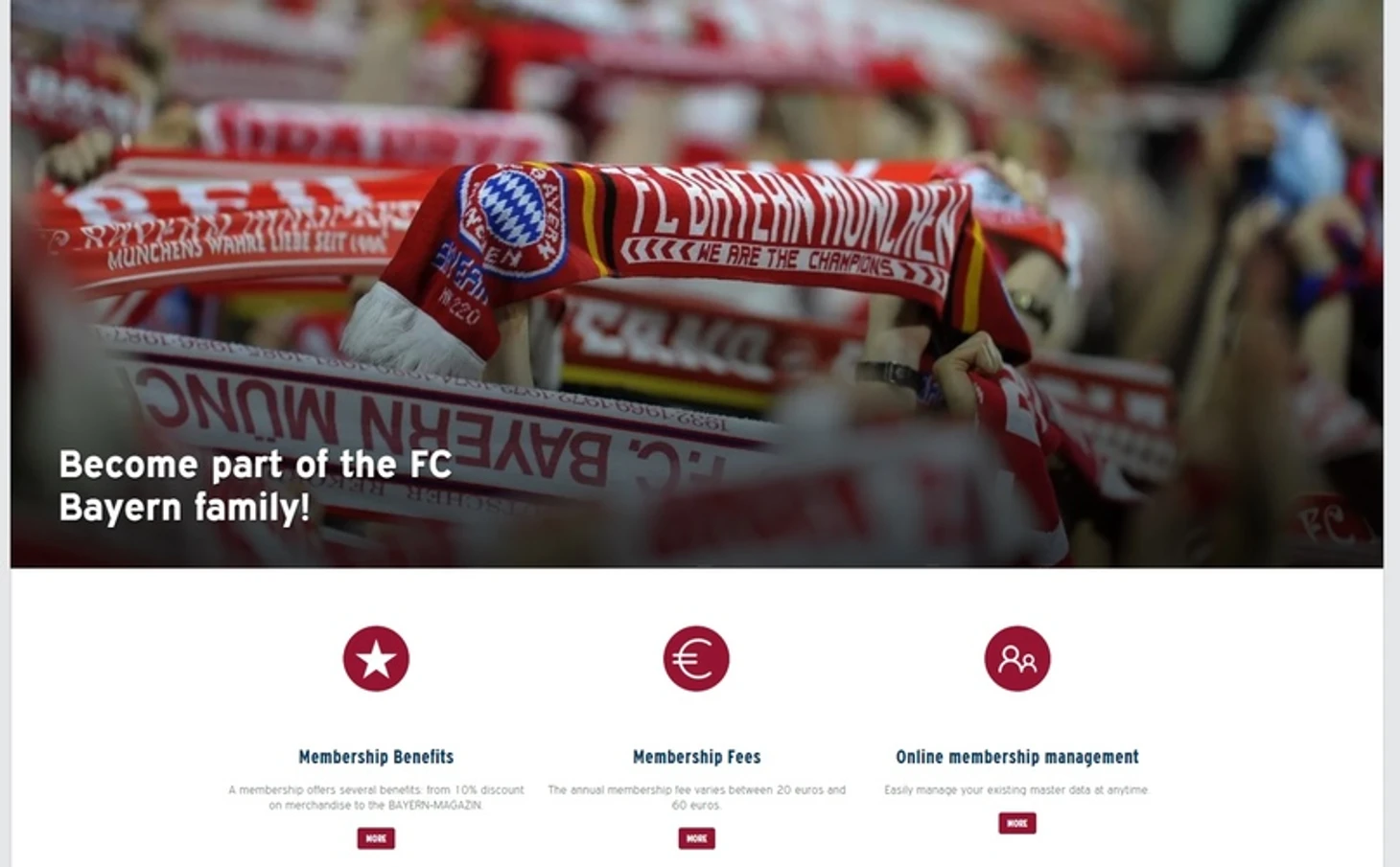 Главная страница раздела «Become a member» — ваш пропуск в мир привилегий официального болельщика «Баварии».