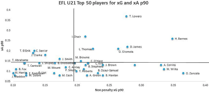 Юноша показывает 0,28xG и 0,22xA за 90 минут – среди игроков до 21 года в системе английской лиги явно лучше лишь двое. При этом Томми Лоури отыграл всего 15 игр за «Крю» в Лиге 2, а Харви Барнс в первой половине сезона тащил «Вест Бром», а теперь стал стабильным игроком основного состава «Лестера».