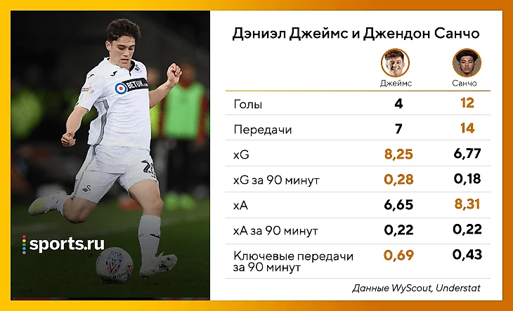 2. Джеймс провел сильный год в чемпионшипе и готов к премьер-лиге. Сезон-2018/19 – первый для Дэниела в основной команде. В этом ему помог вылет «Суонси» из АПЛ. Понижение в классе вынудило клуб избавляться от многих игроков, сидевших на жирном окладе. На выход отправились сразу два игрока, умеющих играть на флангах атаки: Сэм Клукас отправился в «Сток Сити», а Андре Айю – в «Фенербахче».