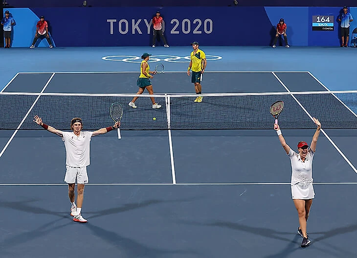 Вторая русская смешанная пара сложилась из топовых одиночников: седьмой ракетки мира Рублева и финалистки «Ролан Гаррос» Павлюченковой, – но настроение у дуэта всю неделю было противоречивое. Рублев, которого еще по предтурнирым фотографиям в соцсетях подозревали в хандре, после поражения на старте одиночки то провозглашал себя лузером, то напоминал, что медаль есть медаль, и неважно, за какой разряд. Более опытная и спокойная Павлюченкова говорила на это, что «Андрей в своем стиле», и просто играла.