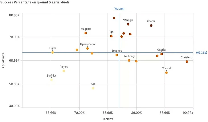 Этот показатель выше, чем у тех же Магуайра, Чаглара Сеюнджу и Давида Луиза. Он также сделал 23 перехвата