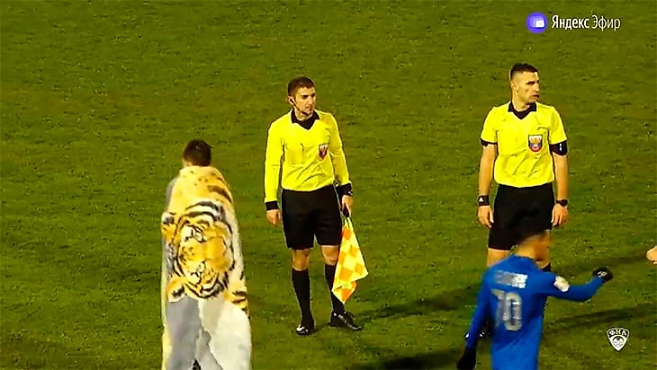 На сборные остановилась Премьер-лига, но не ФНЛ – и там моментами ярче, чем в Лиге наций. Нулевую ничью «Волгаря» и «Балтики» разукрасил Данила Ведерников. На 83-й минуте тренер Виталий Панов заменил его на Андрея Зенина, и Ведерников облачился в плед – совсем не такой, как мы привыкли. Масштабный принт тигра – у кого еще вы видели такой шик?