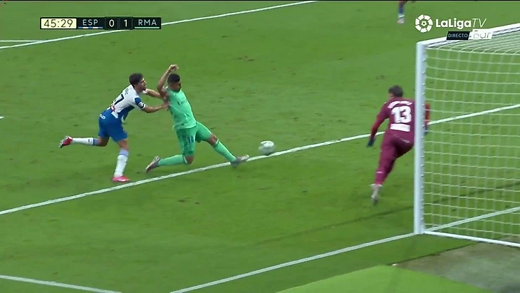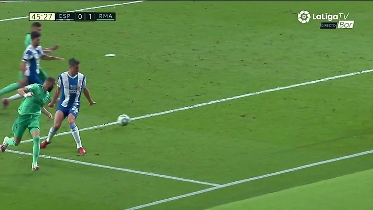 В конце первого тайма матча с «Эспаньолом», «Реал» все-таки дожал соперника. При чем, очень красиво. Карим Бензема вновь продемонстрировал, что нося «девятку» на спине, можно великолепно открывать зоны и отдавать гениальные ассисты. Например, такие как этот: пяткой на Каземиро.