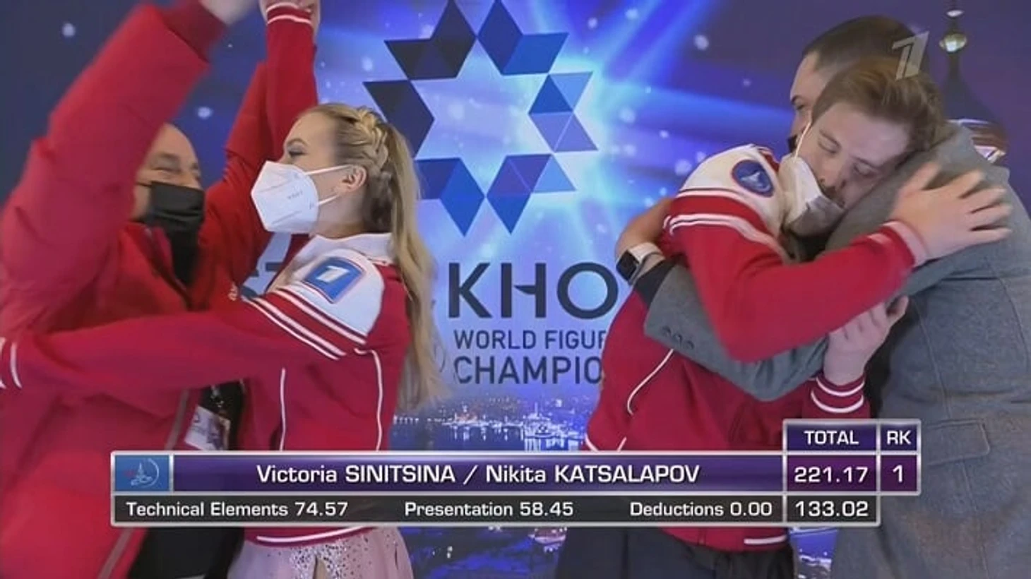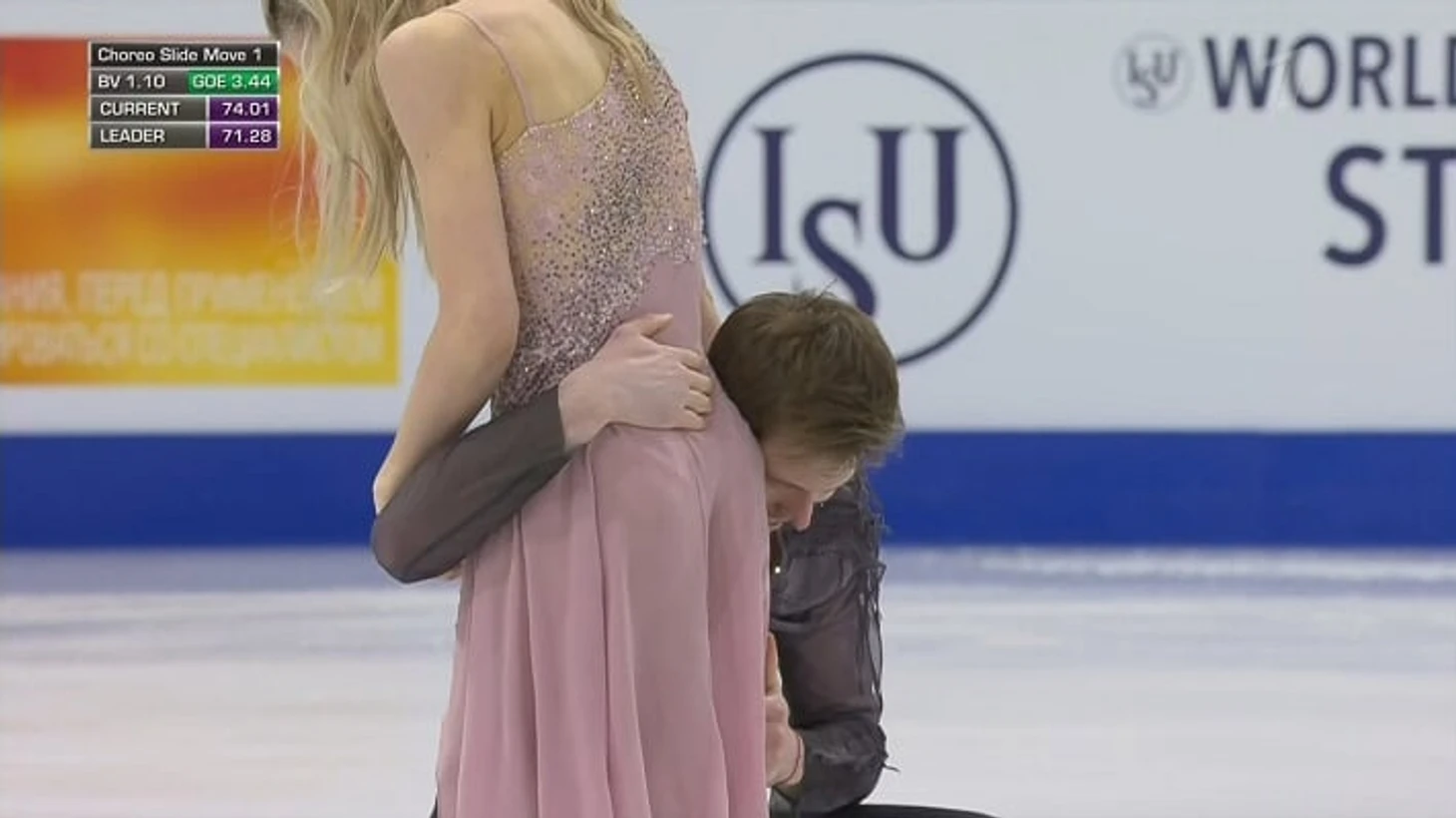 Синицина и Кацалапов – сама нежность: держались за руки и закрывали глаза в ожидании оценок – это их первое золото ЧМ