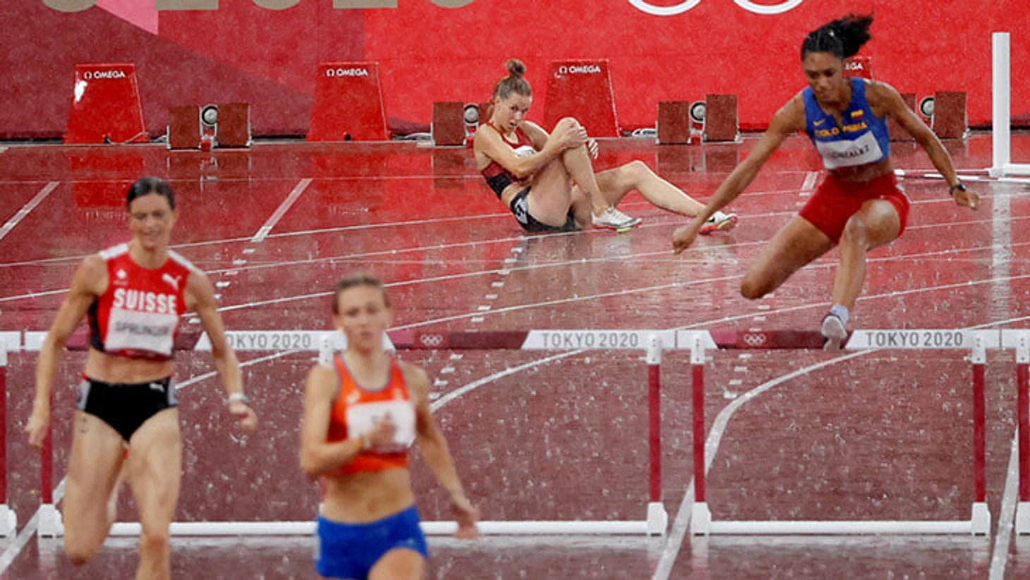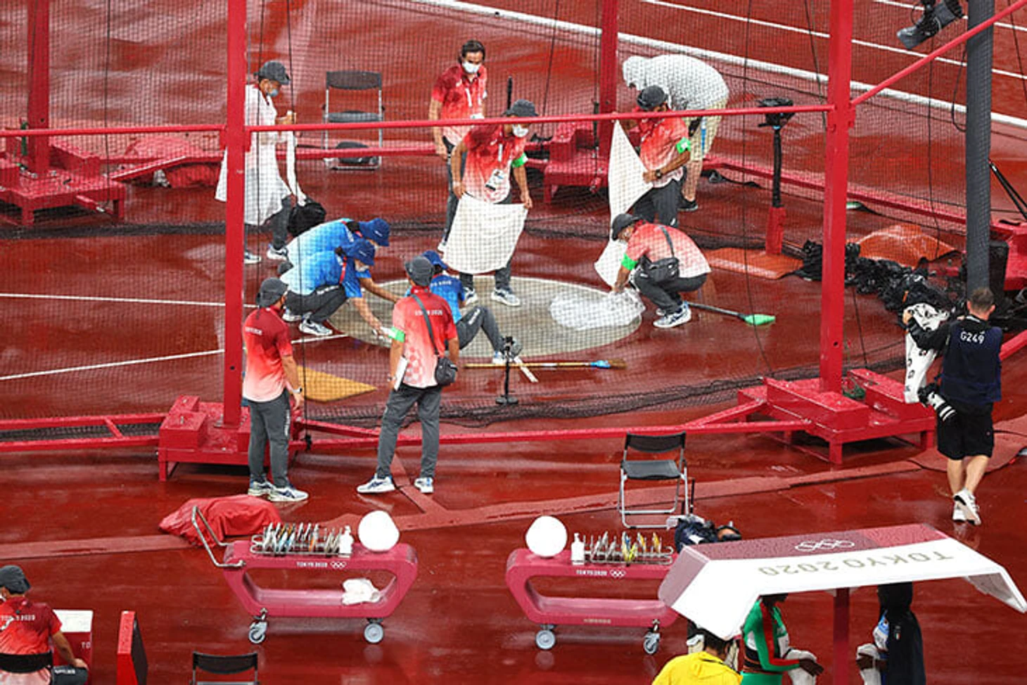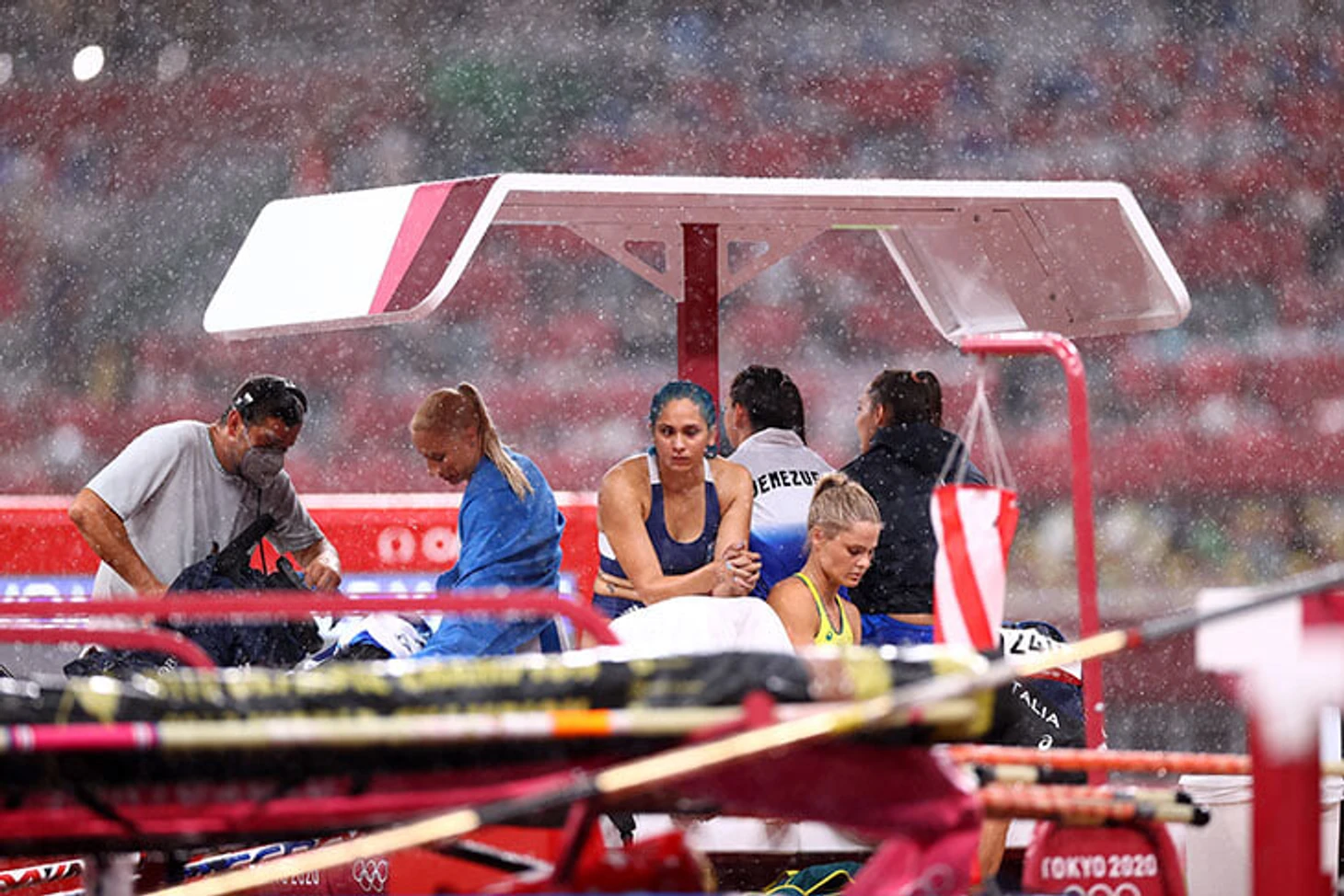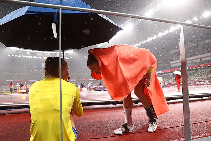 Легкоатлетов в Токио-2020 смыло ливнем: спортсменки валились на дорожках, диск летел не туда, американка жутко упала в прыжках с шестом
