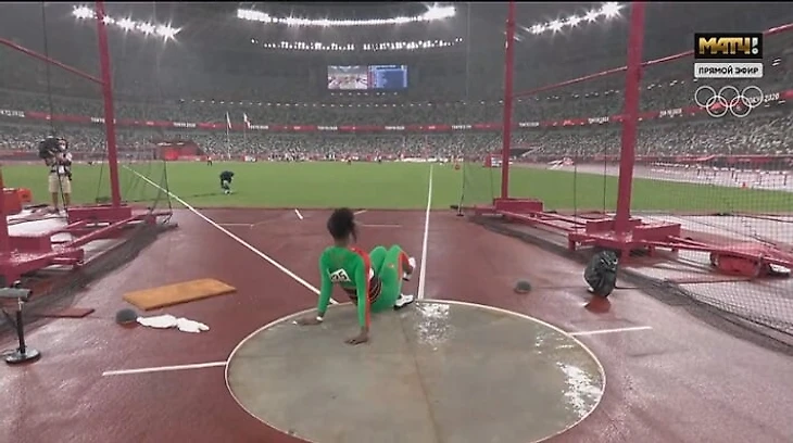 Когда дождь прекратился, турнир по прыжкам с шестом возобновили. Но стадион все равно насквозь промок, и это дико мешало соревноваться. Метательницы диска скользили по сектору и злились, но больше всех не повезло Сэнди Моррис – ее шест сломался во время попытки (соскользнул из-за влаги на покрытии), так что спортсменка упала в яму перед матами. Выглядело жутковато.