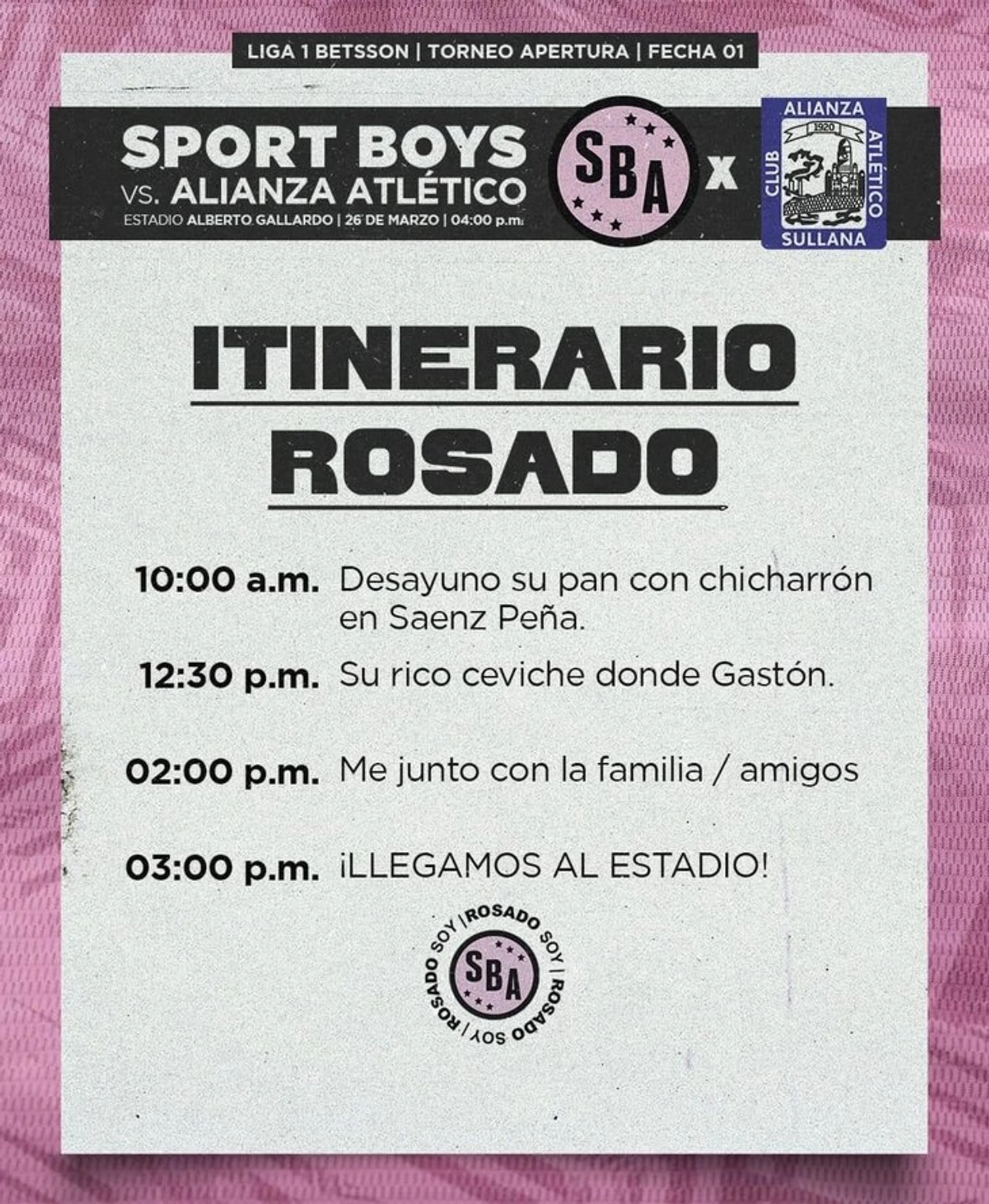 Спорт Бойз тоже пытаются подчеркивать свою связь с городом. Например, перед предстоящим матчем они опубликовали следующий план на день для болельщиков: