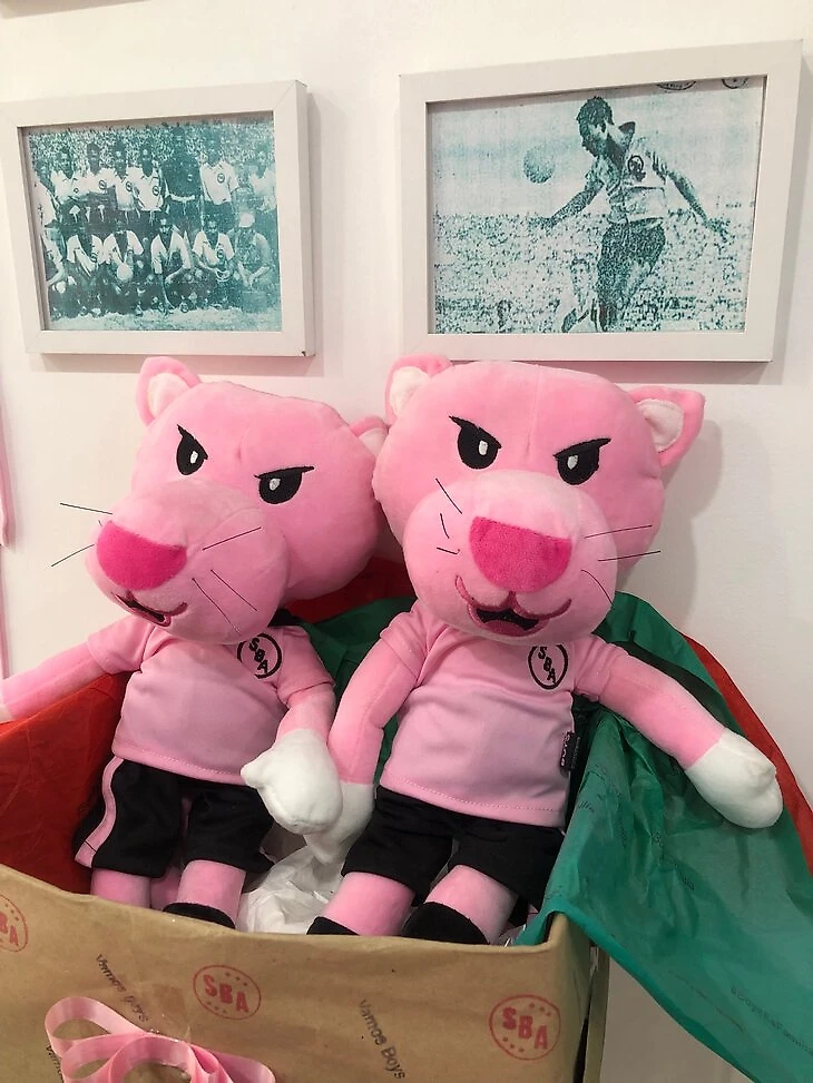 Билеты на игру продавали через интернет и в официальном магазине в одном из торговых центров, где я собственно его и купил. Небольшой магазинчик располагает маленьким количеством ассортимента. Оригинальную форму здесь не найти. По словам продавщицы, футболок было заказано мало, и сейчас их приобрести можно только через интернет. Ну или купить реплику на местном рынке.Тут же в магазине продают стилизованную одежду и сувениры. Один из них, маскот клуба – розовая пантера.