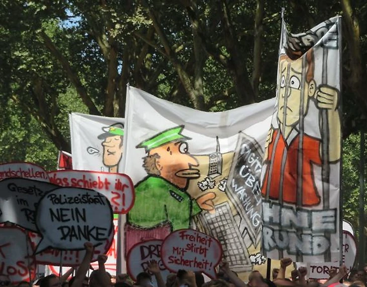 Итак, едва успели отгреметь в Германии протесты местных фанатов против Немецкого Футбольного Союза, как страну захлестнула волна новых протестов - на сей раз против полиции. Вернее не против полиции, а против новых законов и новых полномочий, которыми собираются наградить блюстителей порядка. Давайте подробнее разберемся, что именно не устраивает немцев.