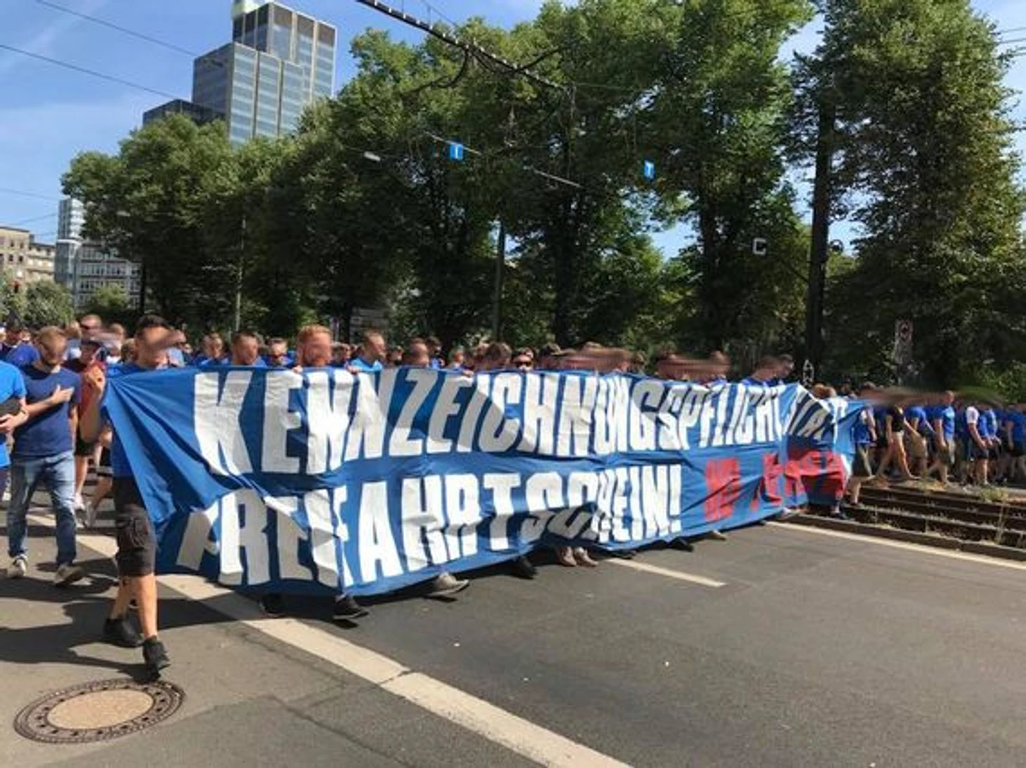 Фэны "Арминии" из Билефельда также не остались в стороне и тоже вышли на улицу против принятия этого нашумевшего закона.