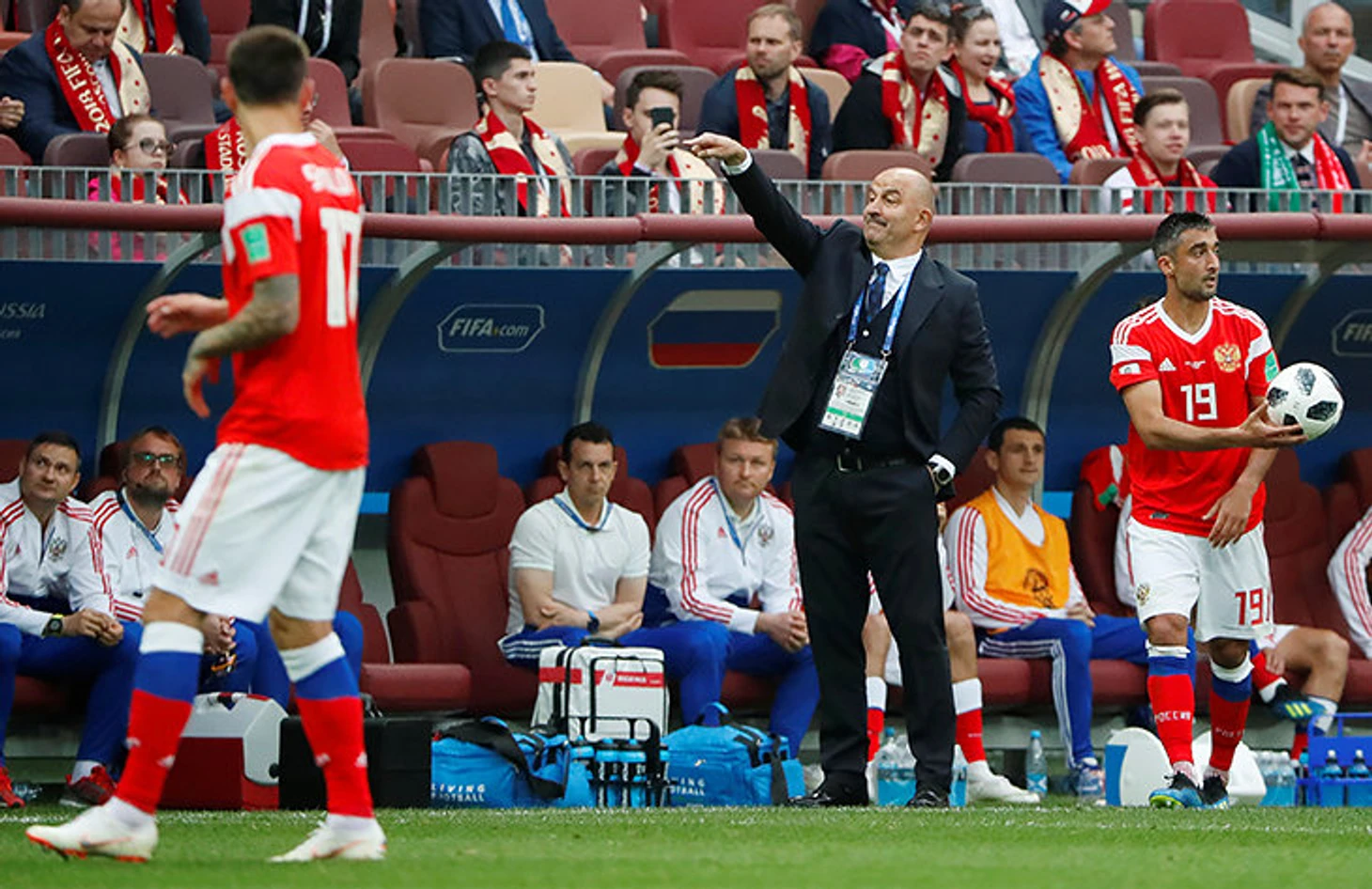 3. По-разному контролировала игру на разных отрезках. До гола Россия прессинговала, совсем не давала саудовцам контролировать темп матча и даже не уступала по владению. После прессинговала ниже и контратаковала. При этом на всех отрезках команда Черчесова не позволяла сопернику создавать по-настоящему опасные моменты.