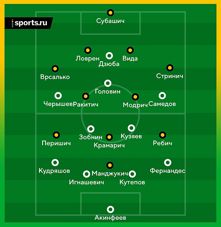 Первым переломным моментом стало великолепие Модрича, который изучил прессинг России и теперь проходил его индивидуально. Вторым – упомянутый Даличем выход Марсело Брозовича вместо Ивана Перишича. Хорватия перешла на 4-3-3 – и окончательно завладела центром.