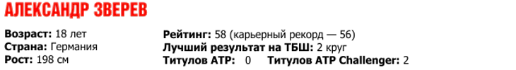 Саша Зверев вырос в теннисной семье: его отец, Александр Зверев, был достаточно успешным советским теннисистом и играл в Кубке Дэвиса за сборную, мама тоже играла профессионально, а брат Миша входил в Топ-50 в обоих разрядах. Впрочем, у Зверева-младшего есть отличные шансы превзойти успехи брата и стать одним из лучших игроков своего поколения.