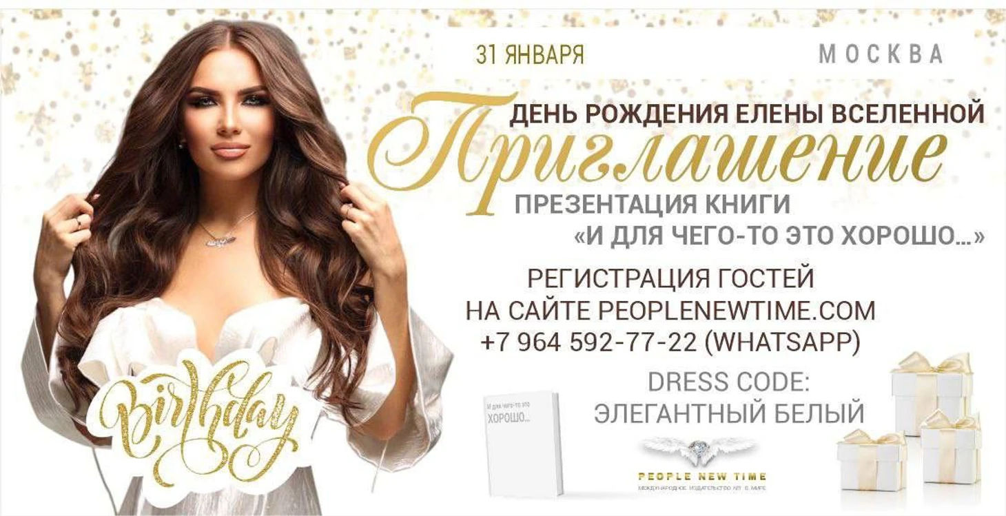 31 января 2025 года в Москве состоится событие года, посвященное презентации книги Елены Вселенной «И для чего-то это хорошо...» — вдохновляющего практикума для тех, кто готов взять ответственность за свою жизнь и выйти на новый уровень осознанности.