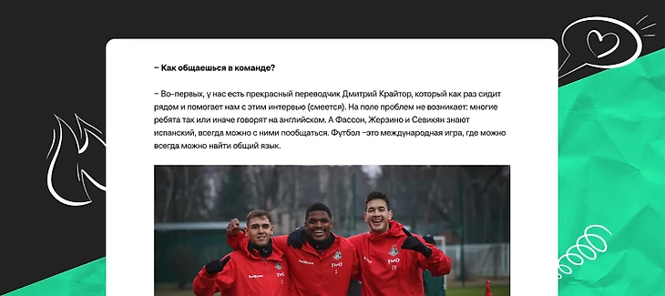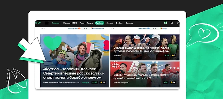 Очень ценим, когда спортсмены выбирают нашу площадку для рассказа своих историй, поэтому всегда поддерживаем: например, супертоп на главной странице, новость в главной ленте, пост в наших флагманских соцсетях.