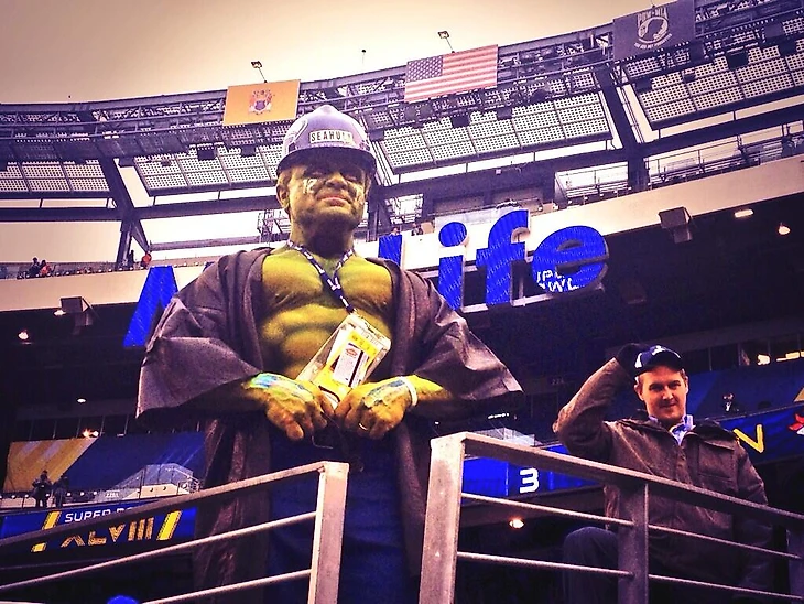3.00. Полчаса до матча! Угадайте, кто этот знаменитый болельщик «Сиэтла».