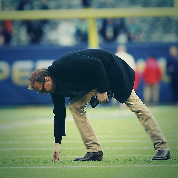 2.30. Час до матча! Кто за 60 минут до игры проверяет качество газона? Кому еще это делать, как не киноактеру Кевину Костнеру? Костнер сейчас один из самых приближенных к НФЛ звезд Голливуда – в конце апреля в широкий прокат выйдет фильм «День драфта» про то, как «Кливленд» выбирает лучшего футболиста-студента.