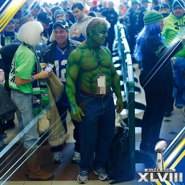 22.50. Сегодня на стадионе «Метлайф» будет 83 тысячи зрителей. Однако, «Сиэтл» будет лишен подавляющей поддержки от своих болельщиков, которая была у них на протяжении всего плей-офф. У «Сихокс» самые шумные фанаты в лиге, их называют «Двенадцатый Игрок». Когда на стадионе в Сиэтле атакует соперник, болельщики создают такой шум, что футболисты порой не слышат друг друга, не понимают инструкций квотербека. Когда в атаке своя команда, то, естественно, фанаты ведут себя тише.