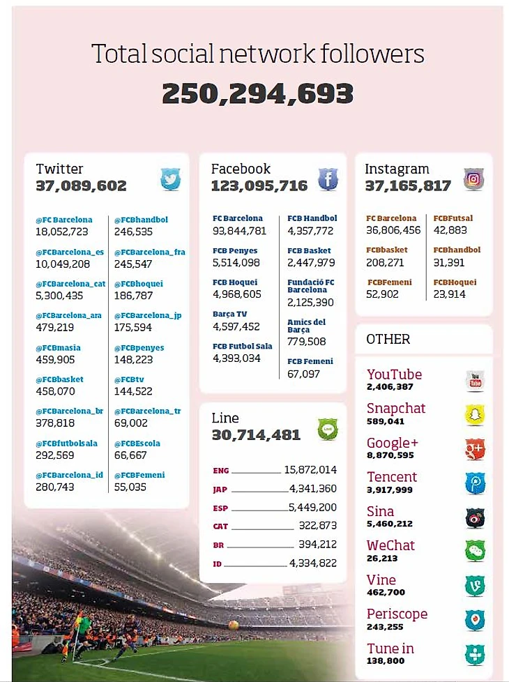 Количество подписчиков «Барселоны» в соцсетях.
